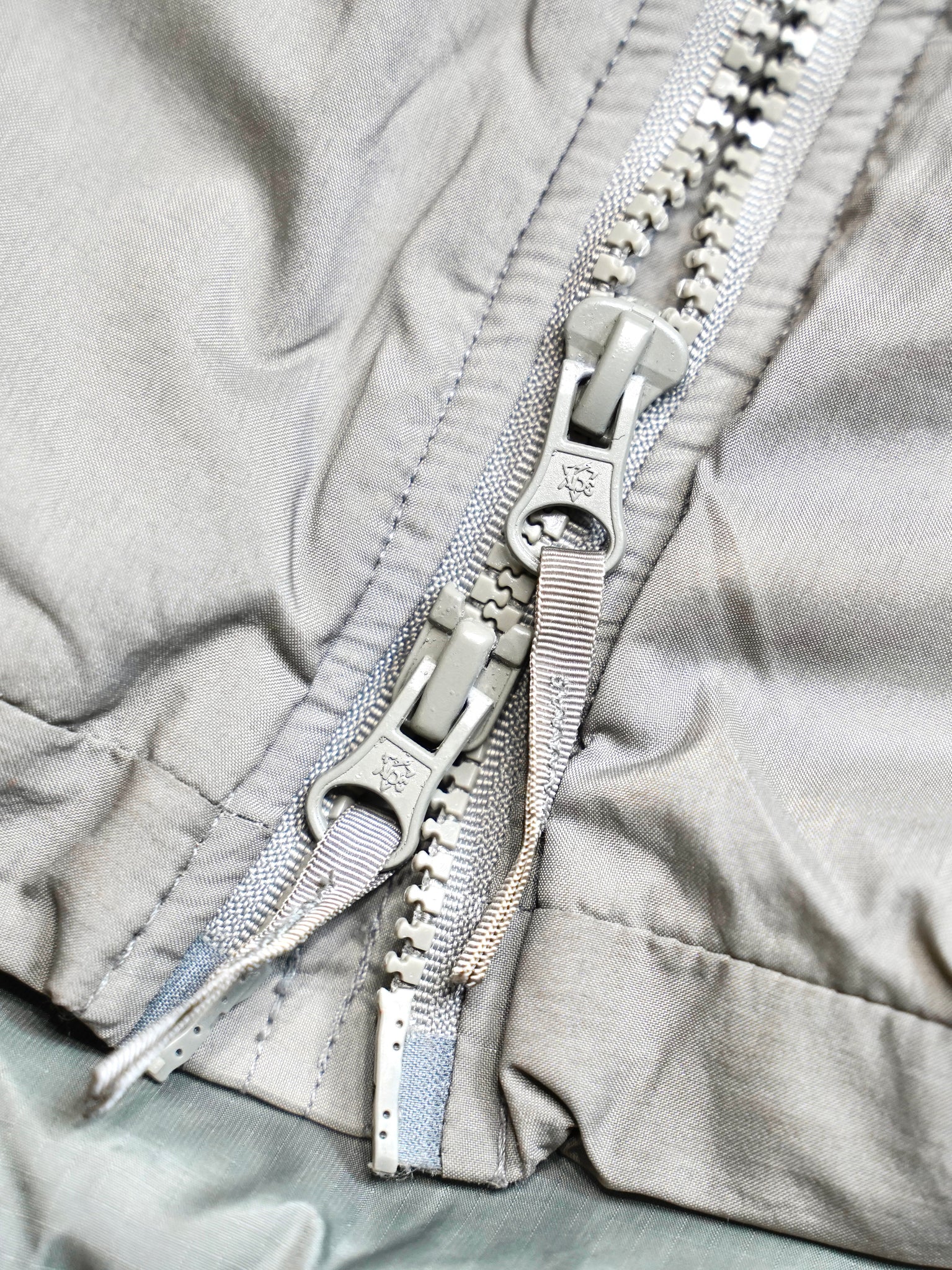 襟にフードが収納可能。肘は補強されています。フロントはダブルジッパー仕様。ジッパー開閉のサイドポケット内には裾を絞れるドローコード付き。メッシュ素材のインナーポケットや袖先はベルクロで調節可能なシンプルで洗練されたディテール。無駄を削ぎ落としたミニマルなルックスに、ミリタリーの機能性がしっかり落とし込まれた完成度の高いモデル。