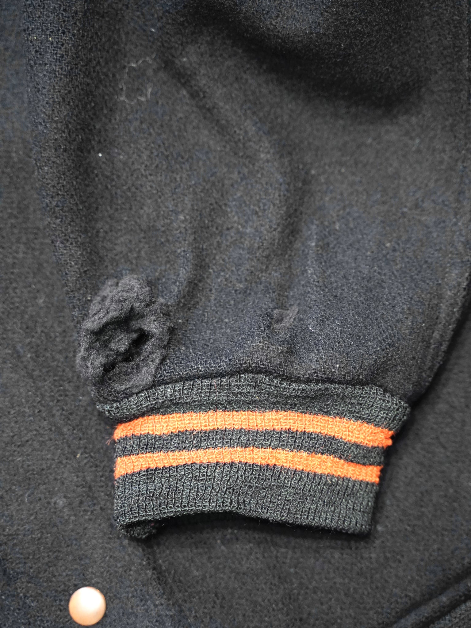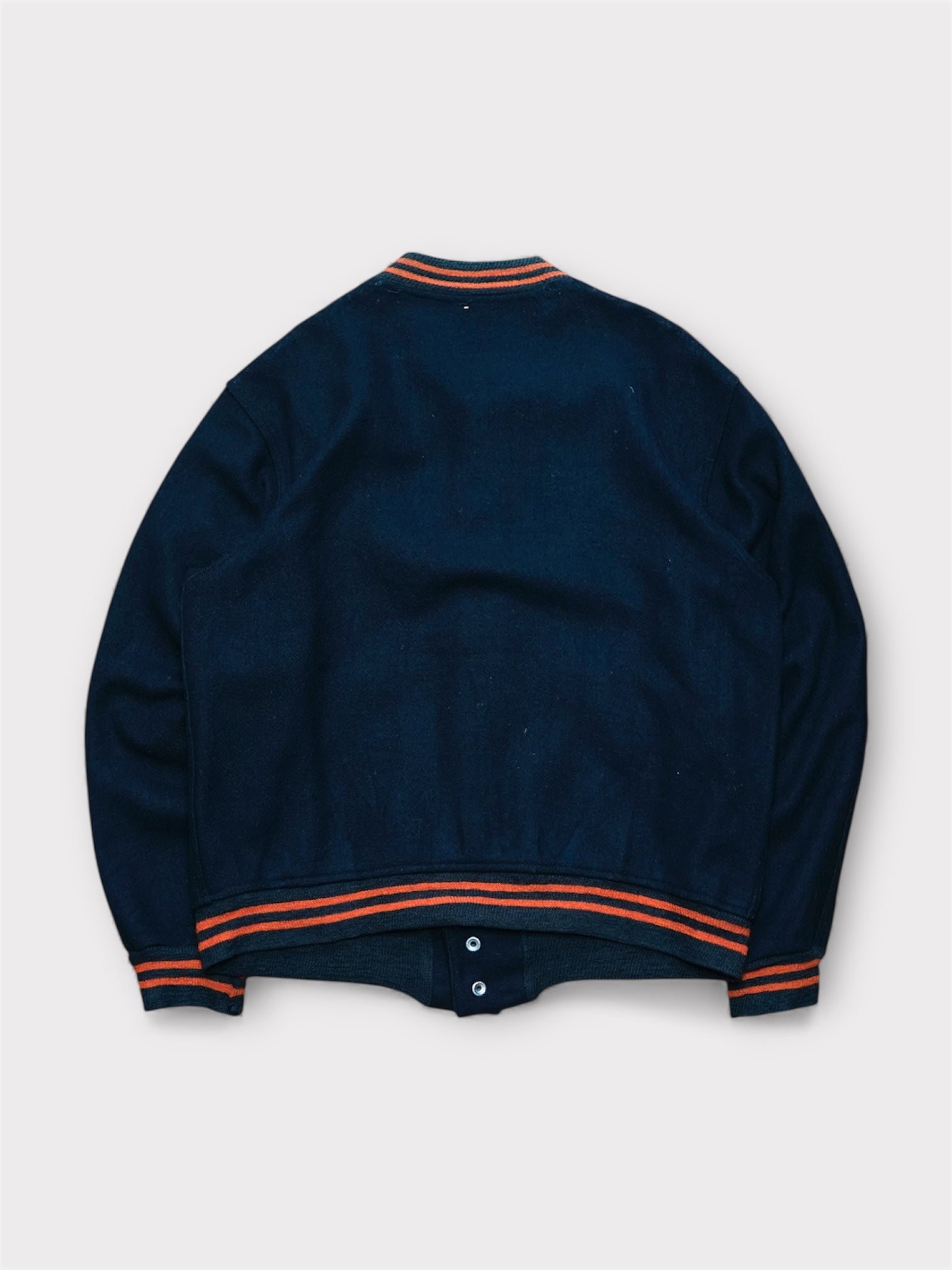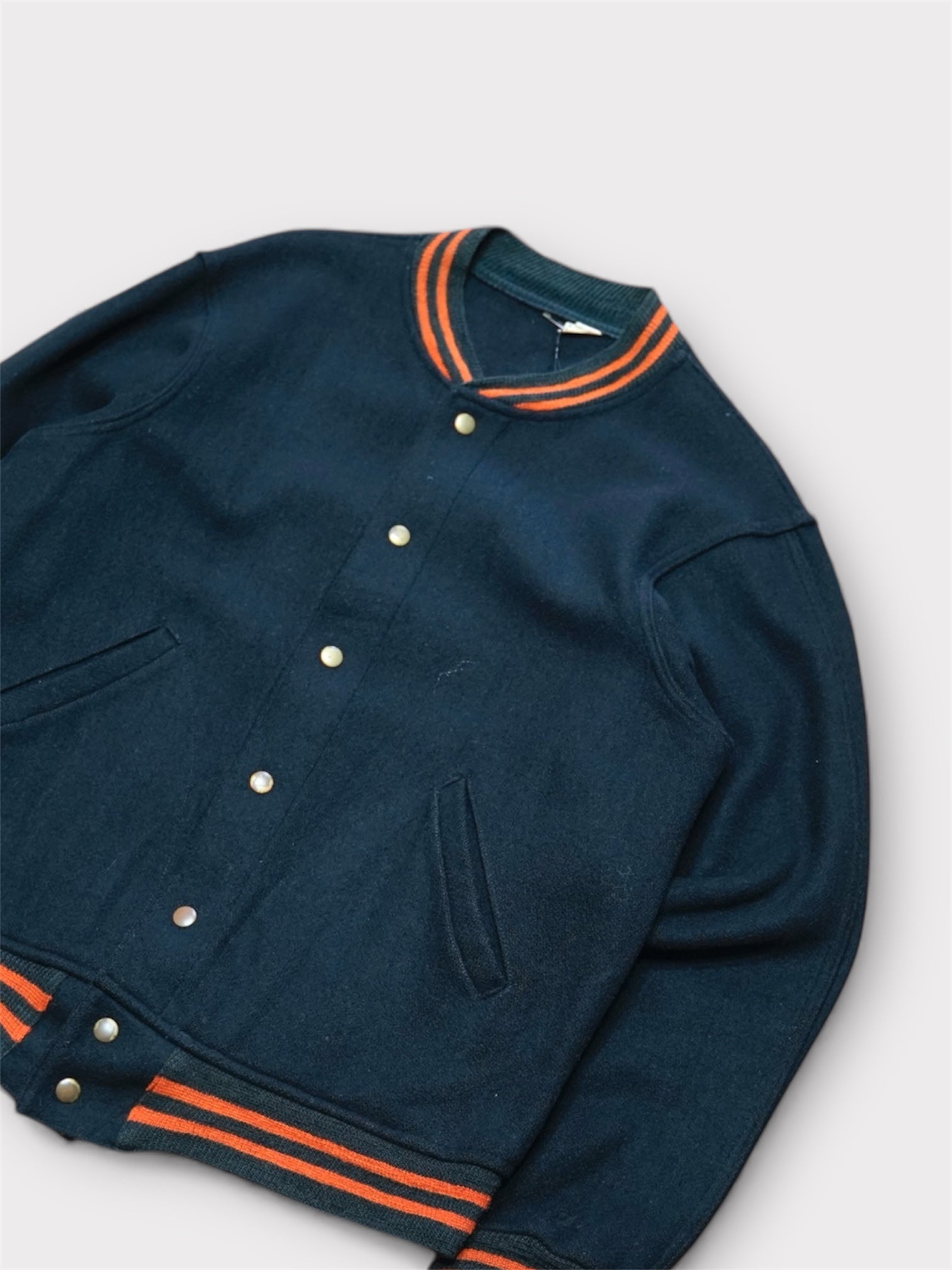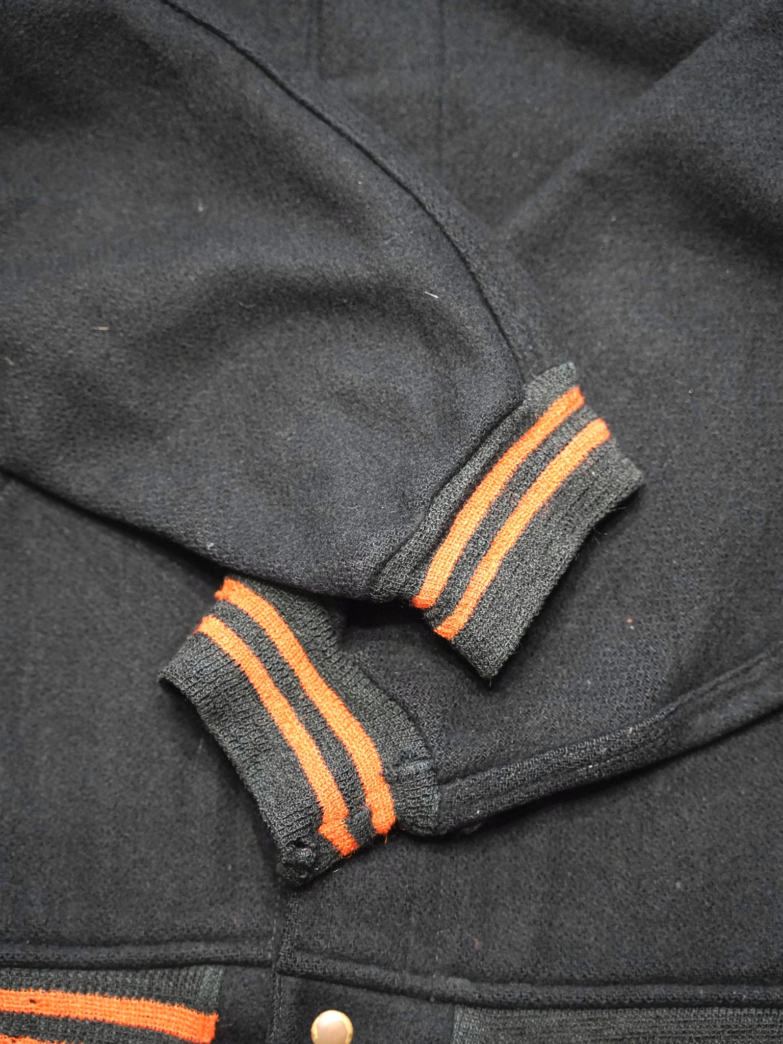ボディは肉厚でしっかりとした厚手のウールメルトン、袖リブは細めのオレンジライン入り。ブラック×オレンジリブの配色で市場でもほとんど見ない人気カラーの一着。