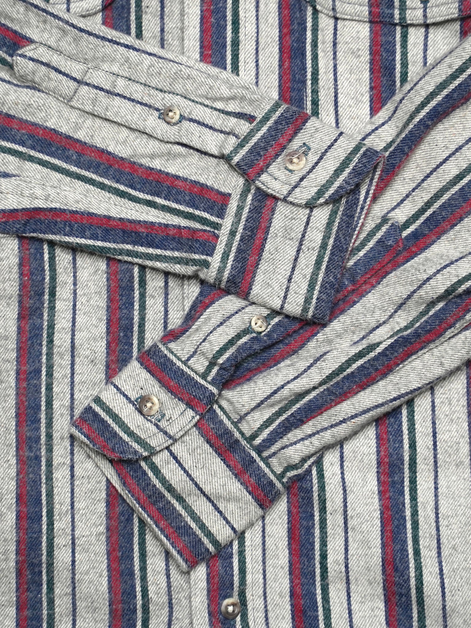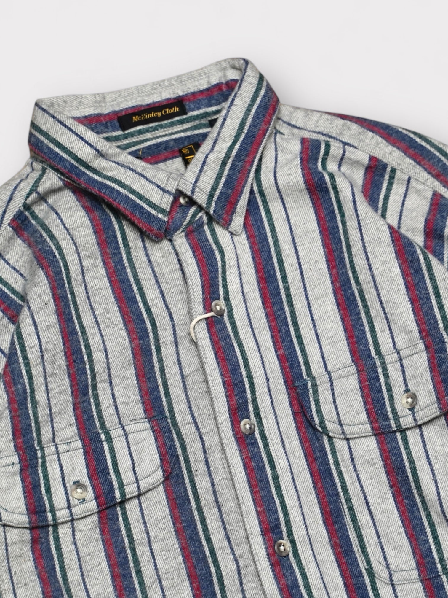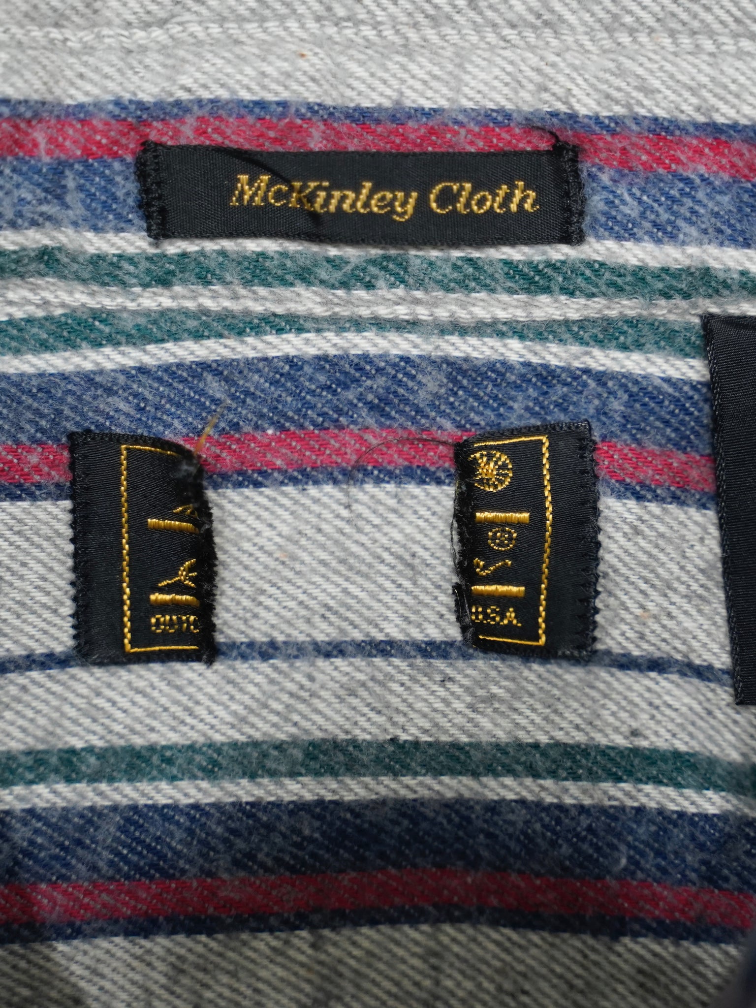 アメリカのミリタリー倉庫にイレギュラー品として保管されていた、80年代 Dominica製 Eddie Bauer のデットストックのマッキンリークロス ストライプシャツ。