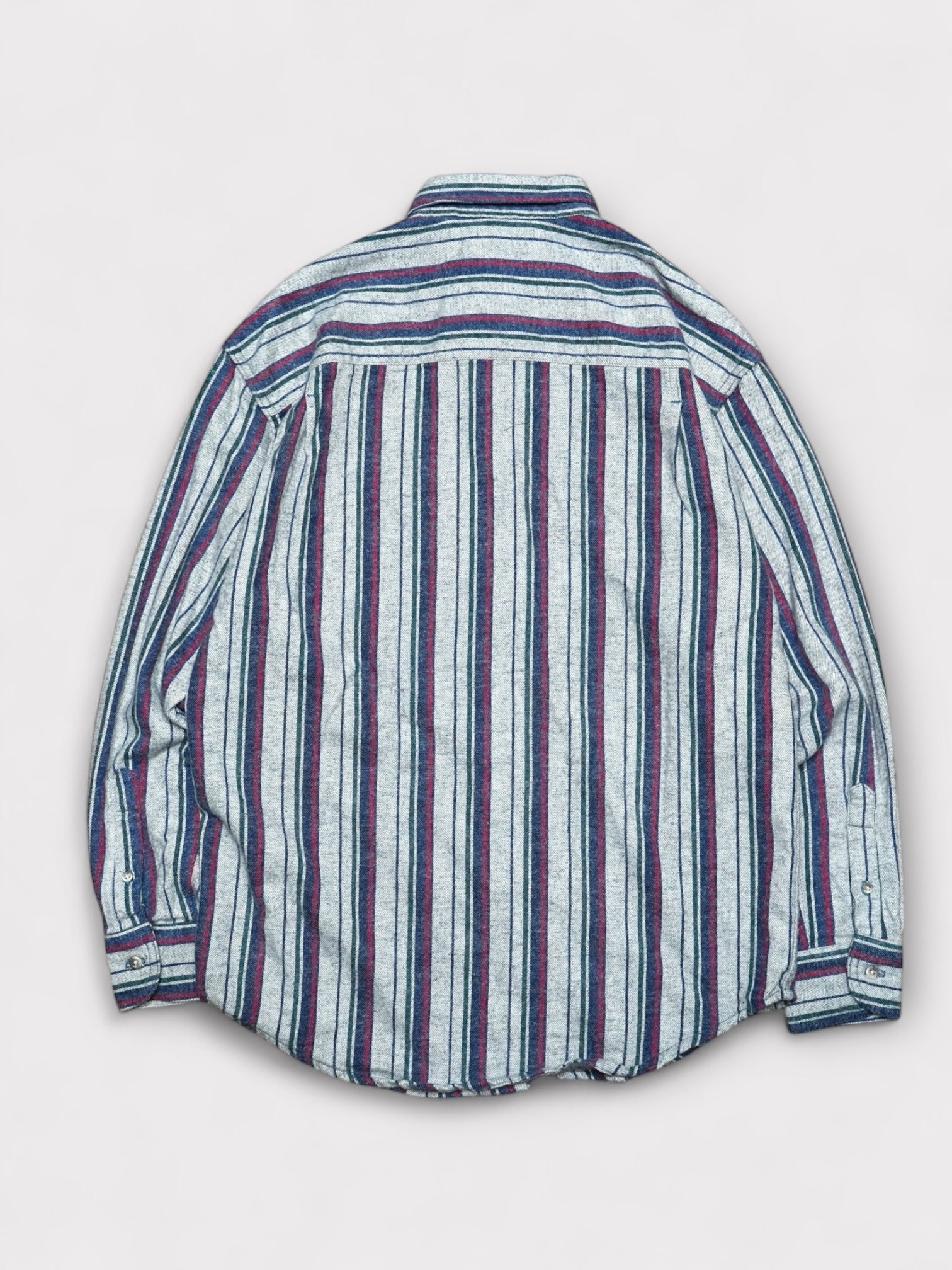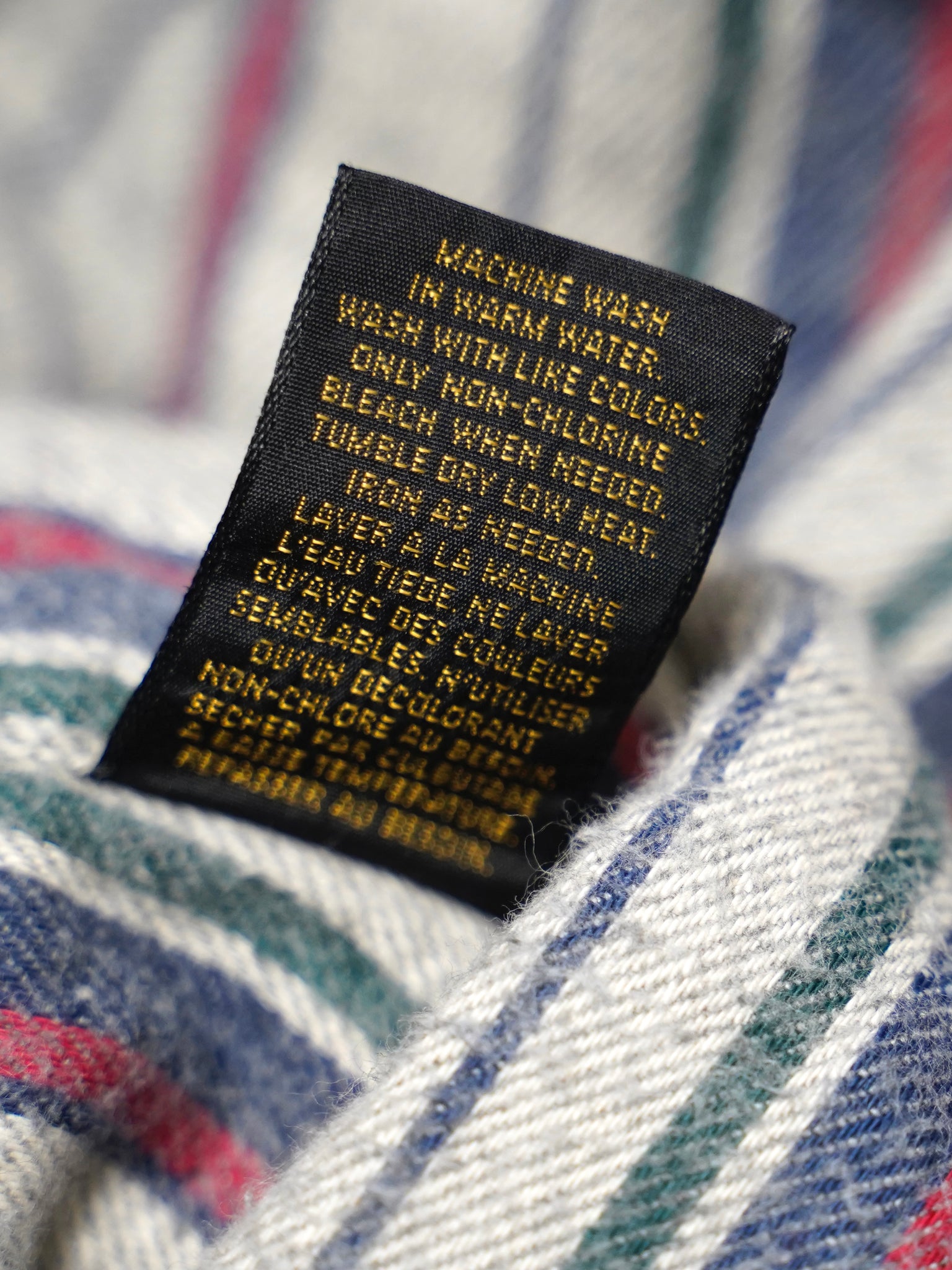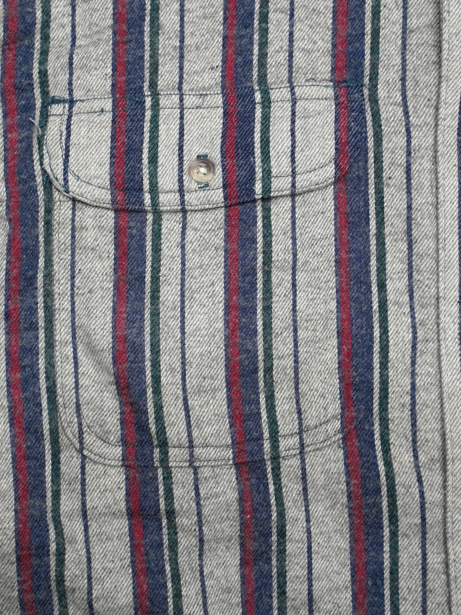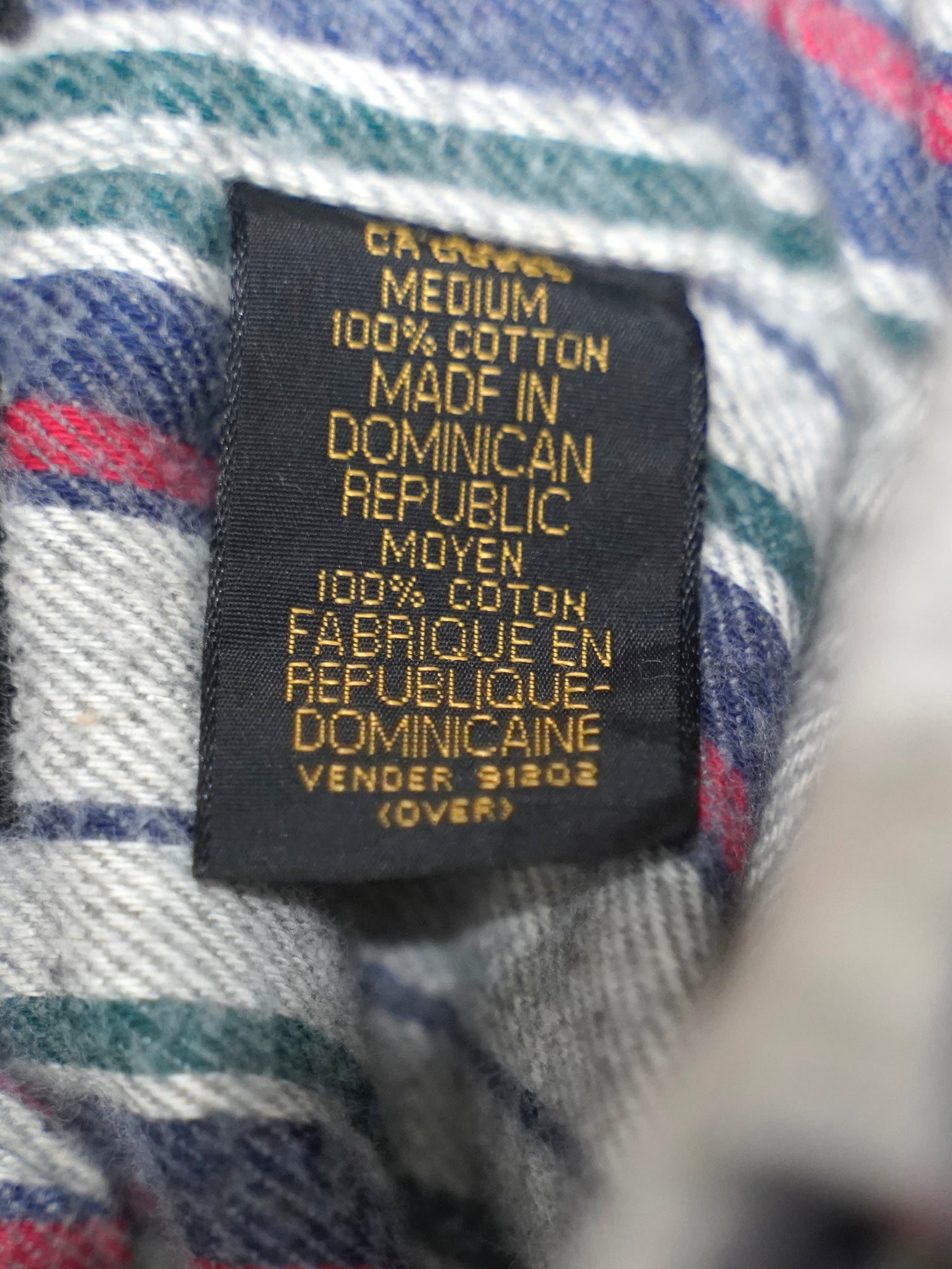 アメリカのミリタリー倉庫にイレギュラー品として保管されていた、80年代 Dominica製 Eddie Bauer のデットストックのマッキンリークロス ストライプシャツ。