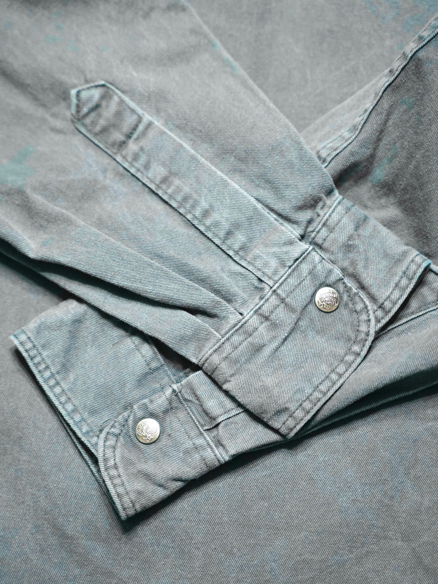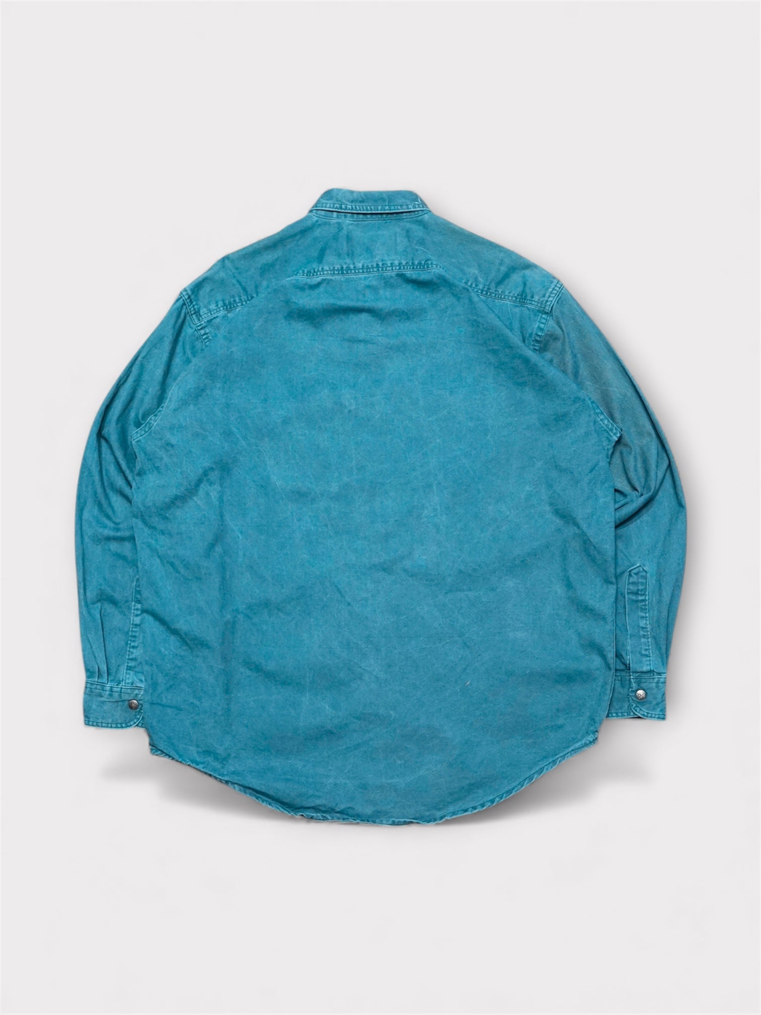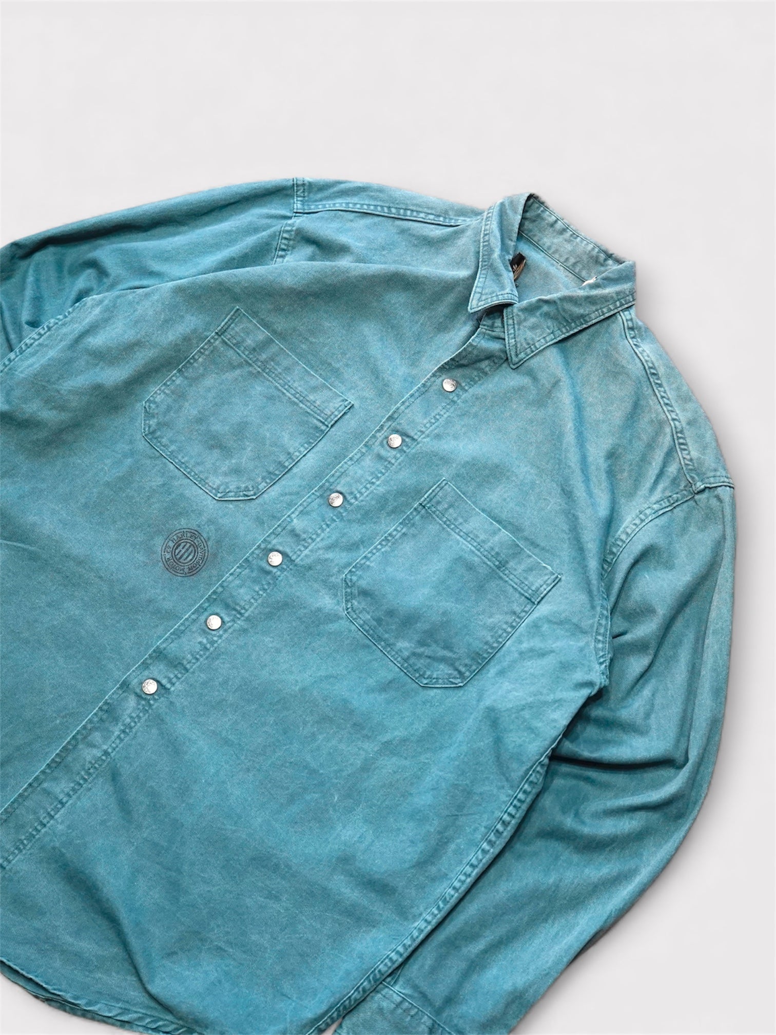アメリカのミリタリー倉庫にイレギュラー品として保管されていた、80年代 Dominica製 HARLEY-DAVIDSON デットストックのコットンツイルワークシャツ。